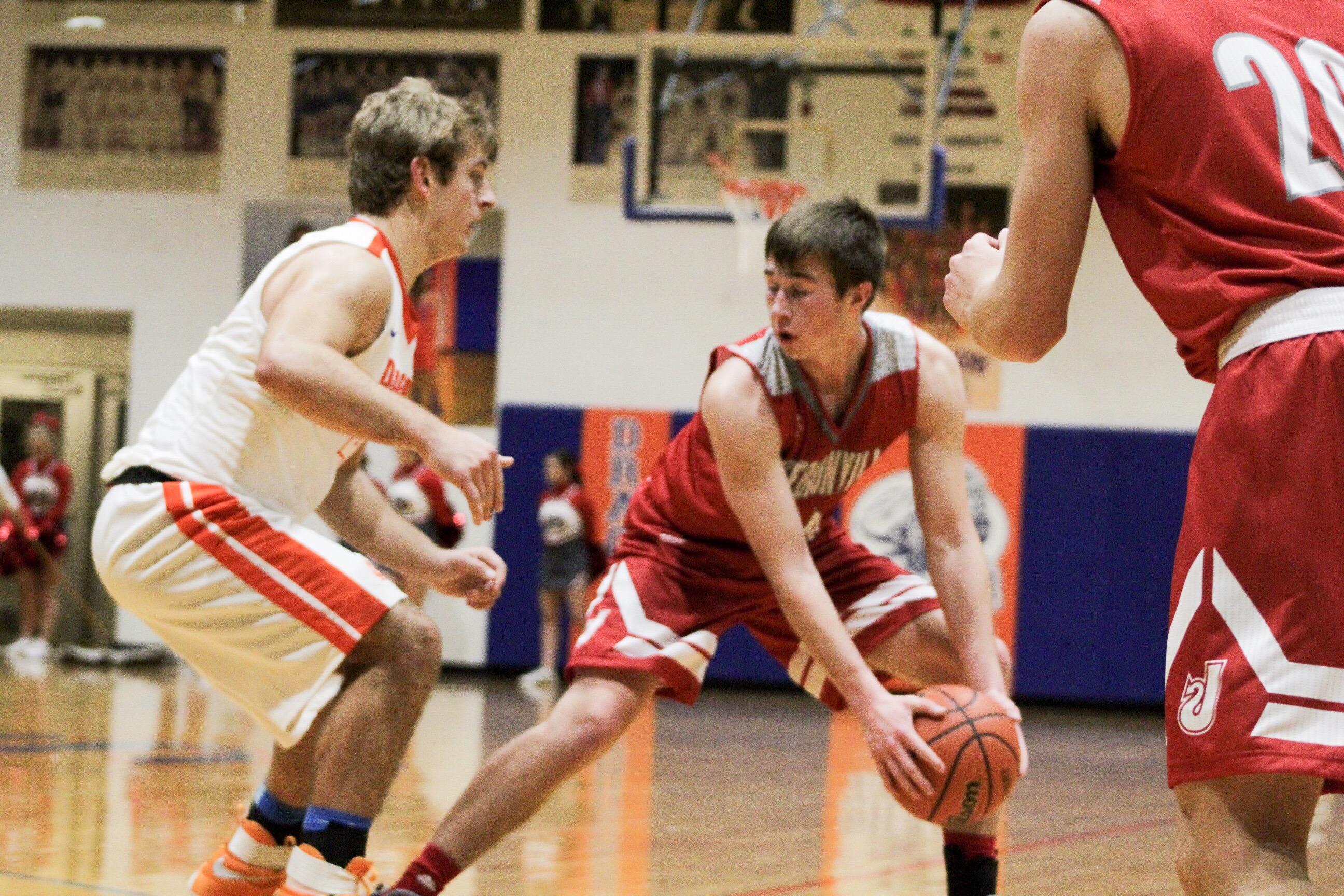 Photos by Phillip SteinmetzJacob Jones passing it to Gabe Gallahar to the three point line.Cameron Northern going in for the layup.Bailey Falkenstein fighting for the layup.Bailey Falkenstein looking for the pass.Tre’ Coleman attempting the layup.Gerrin Moore with the post fade shot.Jaden Coleman (JV) throwing down a dunk after an ally-oop off the backboard.Jaden Coleman (JV) goes up for the cram.