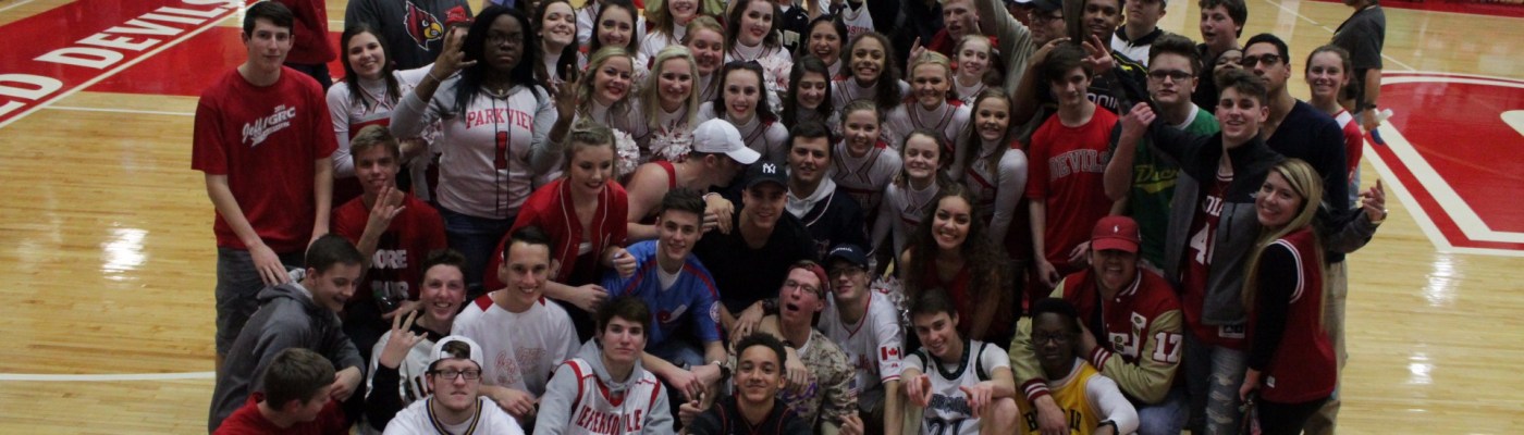 The Jeffersonville student section and cheerleaders after the 19 point win.
