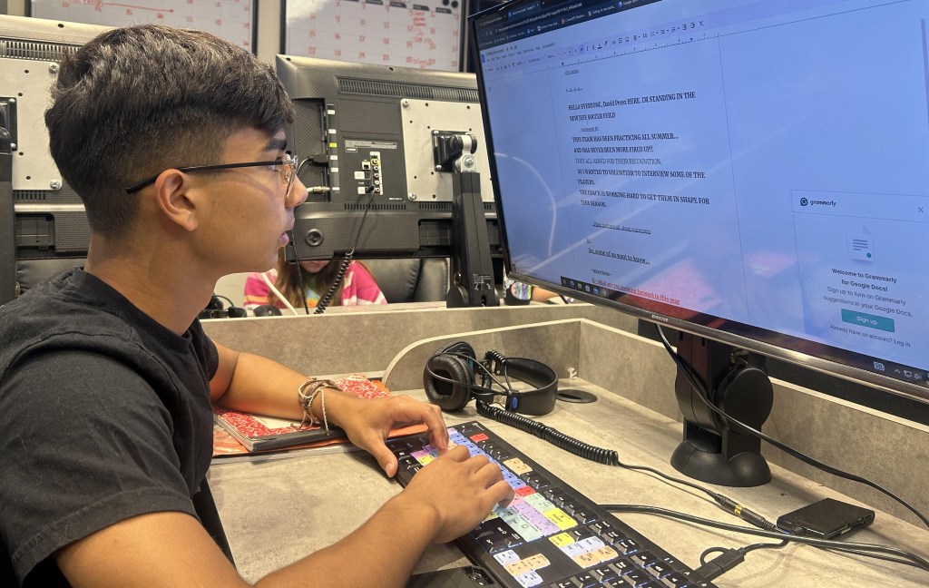 Sophomore David Perez works on his project script. Callan, in his first year with WJHI, said, “Attitude is everything. If you have a great attitude, you are going to learn.” Photo by Ayianna Maddox.