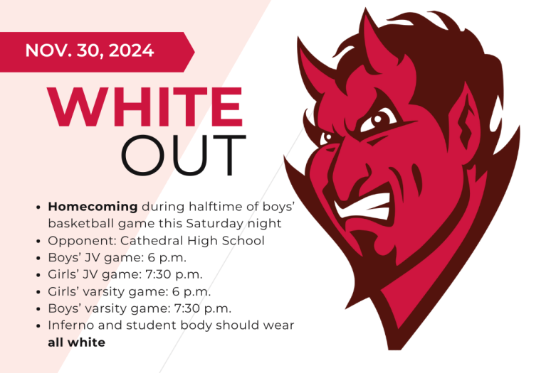 Both the girls’ and boys’ basketball teams will play this Saturday; the theme is “White Out.”