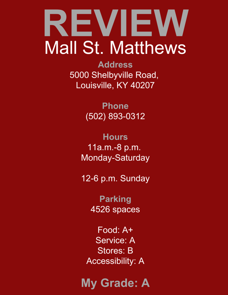 Saturday is the busiest day for Mall St. Matthews in St. Matthews, Kentucky. With over 150 different stores, it is no wonder so many people want to visit.
