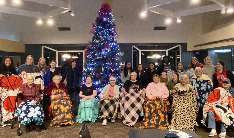 Anchor club members participated in the “Blanket Making” project while sharing a unique experience with residents of Westminster Village on Dec 13, 2024. Photo by Areli Hernandez Romero.