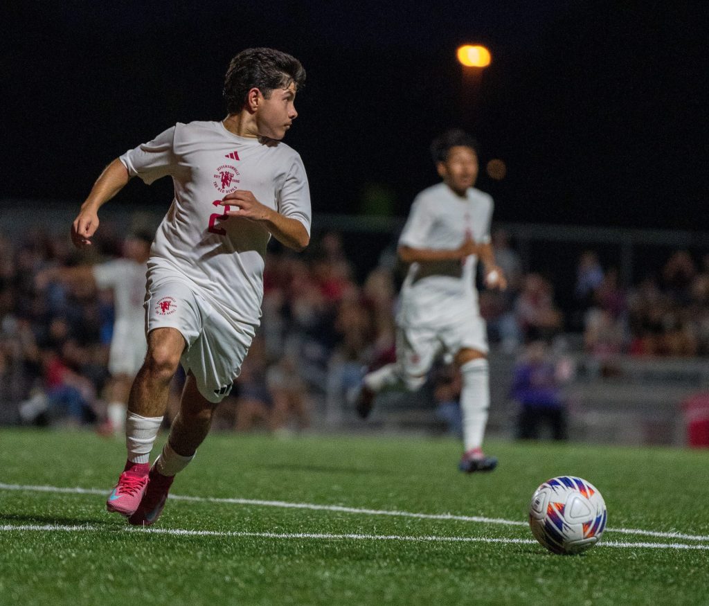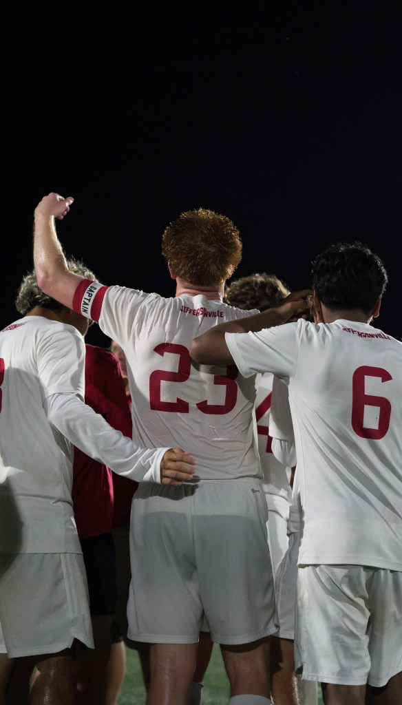 Coach Colin Bell talks to the team during Tuesday’s match against New Albany. JHS won 2-0. Photo by Parker McCloskey.Senior Shlomo Tshimbalanga guards the ball from his defending New Albany opponent. JHS won 2-0. Photo by Magdalene Conrad.Senior Elijah Cheeks catches up with the ball. Photo by Parker McCloskey.Senior Elijah Cheeks kicks to score a goal for the Red Devils, who defeated New Albany 2-0 Tuesday night. JHS next plays Whiteland this Saturday, Sept. 27. Photo by Magdalene Conrad.Senior Rony Madrid runs toward the ball. Photo by Parker McCloskey.Head coach Colin Bell speaks to the team during halftime at yesterday’s game. Photo by Magdalene Conrad.Freshman Jafet Benitez-Rubio and two of his teammates listen to the coaches during the Tuesday match-up against New Albany. The Red Devils won 2-0. Photo by Parker McCloskey.Sophomore Giovanni Sanchez Cruz passes the ball. Photo by Magdalene Conrad.Senior Rony Madrid and Junior Alan Solorzano Lopez hug after Madrid scores a goal in the 2-0 victory over New Albany. Photo by Magdalene Conrad.Senior Maxwell Schoonover and the Red Devils celebrate their 2-0 win over the New Albany Bulldogs on Tuesday night. Photo by Parker McCloskey.The Red Devil soccer team breaks it down after a 2-0 conference win against New Albany. The Red Devils play Saturday against Whiteland. Photo by Magdalene Conrad.