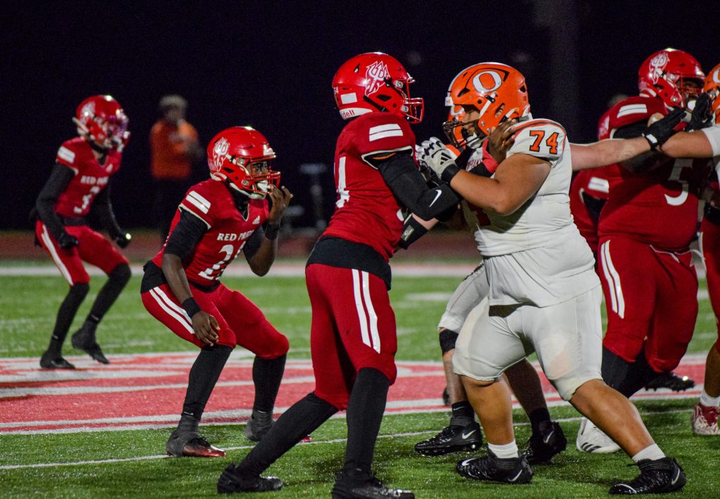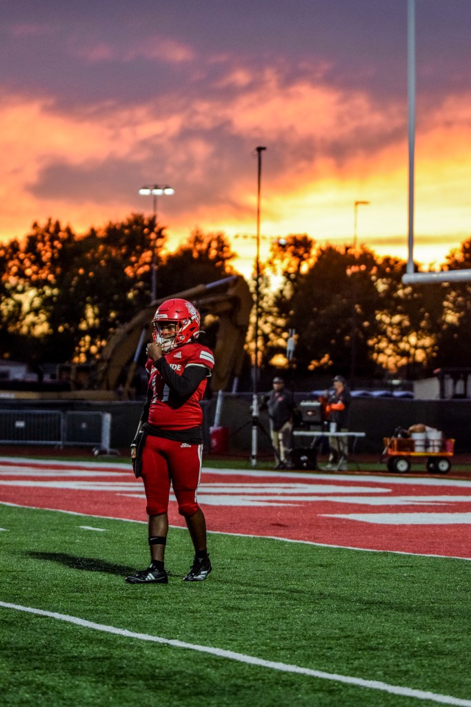 Senior Maxwell Schoonover looks off in the distance while the national anthem plays at the beginning of the JHS game with Columbus East on Friday. Columbus East won 28-9. Photo by Malachi Conrad.Senior Tyes McCondichie runs with the ball. Photo by Malachi Conrad.Junior Cordell Thomas takes a breather. Photo by Malachi Conrad.Sophomore Tristan Newby looks out onto the field. Jeffersonville lost to Columbus East 28-9. Photo by Malachi Conrad.Sophomore Jaxx Long helps junior Cordell Thomas off the field. Photo by Malachi Conrad.Sophomore Darien Williams looks at his opponent after he went down in Friday’s game against Columbus East. Photo by Malachi Conrad.Senior Maverick McAllister and senior Bryce Grant tackle Columbus East in the third quarter. Photo by Malachi Conrad.Sophomore Nation Roe-McBroom attempts to catch the ball. Photo by Malachi Conrad.Senior Jamar Hobbs tries to shed the Columbus East offensive linemen. Photo by Malachi Conrad.Sophomore Brayden Bachman throws the ball to a JHS wide receiver. Columbus East won Friday’s game 28-9. The Red Devils next play Jennings County this Friday. Photo by Malachi Conrad.