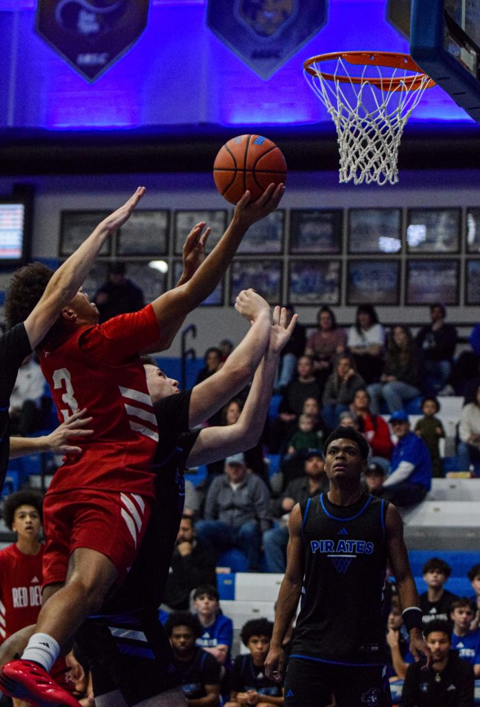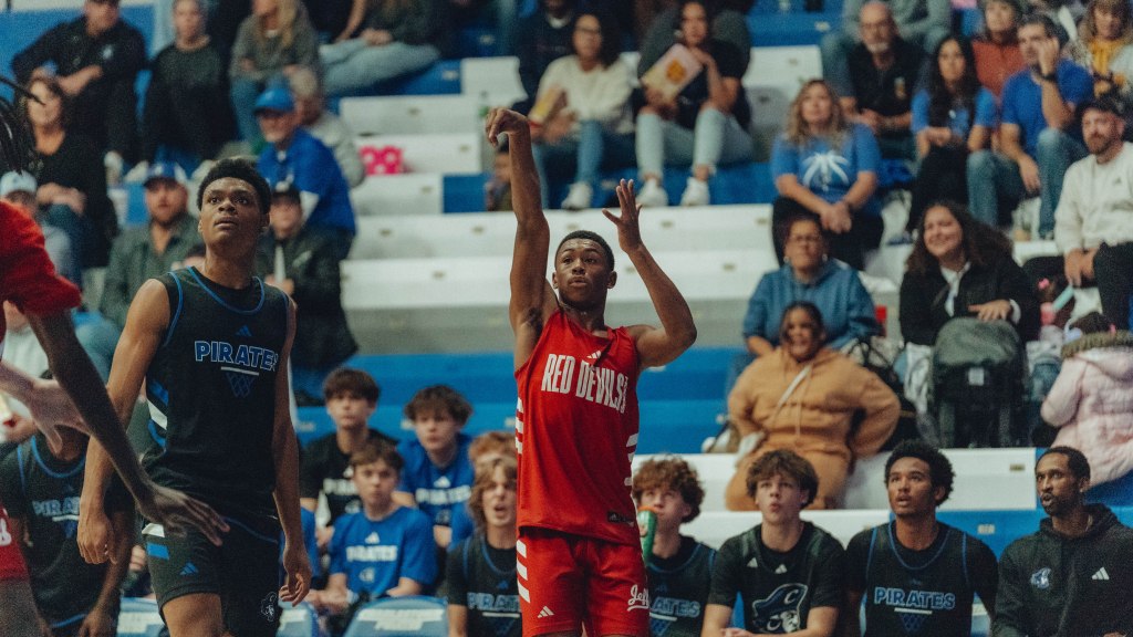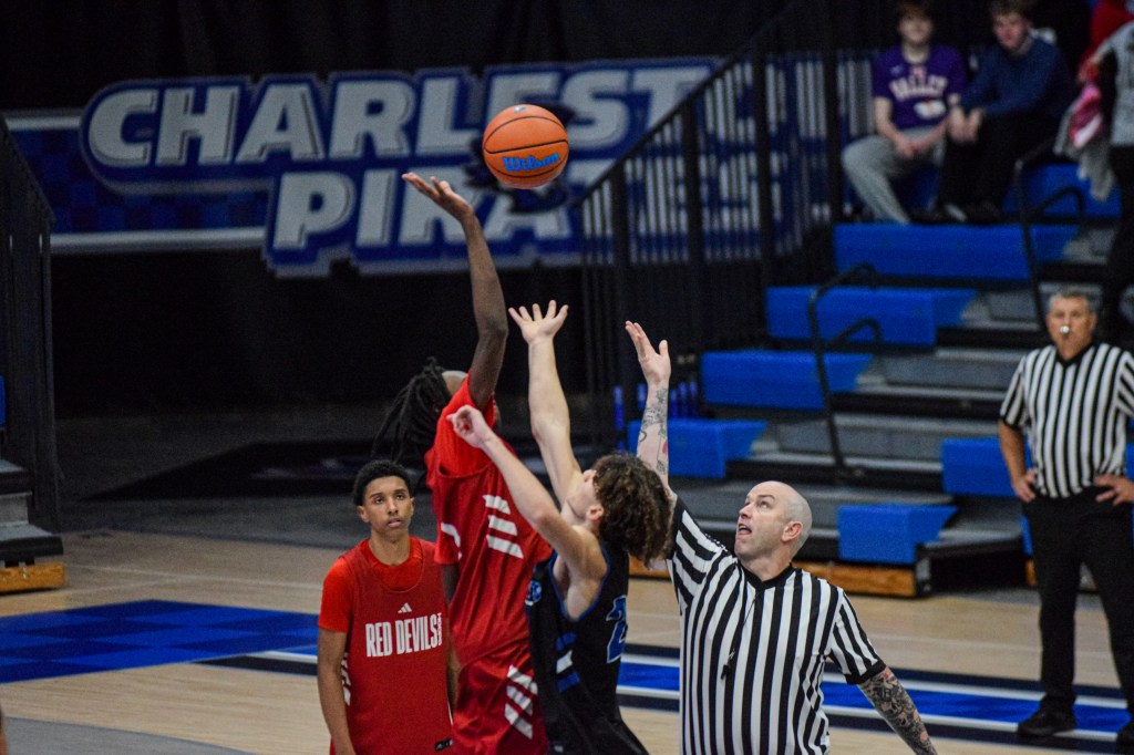 Senior Zion Mitchell completes the tip-off off starting the game with possession. The teams played four different scrimmages on Friday night. Photo by Malachi Conrad.Senior Cash Whitehead takes a moment as he brings the ball up the court for the Red Devils during Friday’s scrimmage at Charlestown High School. Photo by Magdalene Conrad.Jeffersonville Red Devils take a timeout to figure out their game plan. Photo by Malachi Conrad.Senior Zion Mitchell scans the floor to pass. Photo by Magdalene Conrad.JHS student section cheers their team on Nov. 21 at the scrimmage at Charlestown High School. Photo by Malachi Conrad.Senior Cash Whitehead attempts a contested layup during the scrimmage versus Charlestown last Friday. Photo by Magdalene Conrad.Junior Caleb Jones takes the opportunity to make a successful layup. Photo by Malachi Conrad.Senior Elijah Cheeks takes a shot for the Red Devils during their faceoff with Charlestown High School. Photo by Magdalene Conrad. Senior Elijah Cheeks looks at his defender in the first scrimmage against Charlestown High School. Photo by Malachi Conrad.Senior Cash Whitehead takes a breather in between plays. Photo by Malachi Conrad.Junior Jacob Wilkerson lays the ball up through contact. Photo by Malachi Conrad.Senior Elijah Cheeks pulls up to shoot. Photo by Magdalene Conrad. Junior Tre Mitchell shoots a 3-point shot. Photo by Magdalene Conrad.Coach Sherron Wilkerson advises the Red Devil basketball team to create a play. Photo by Magdalene Conrad.