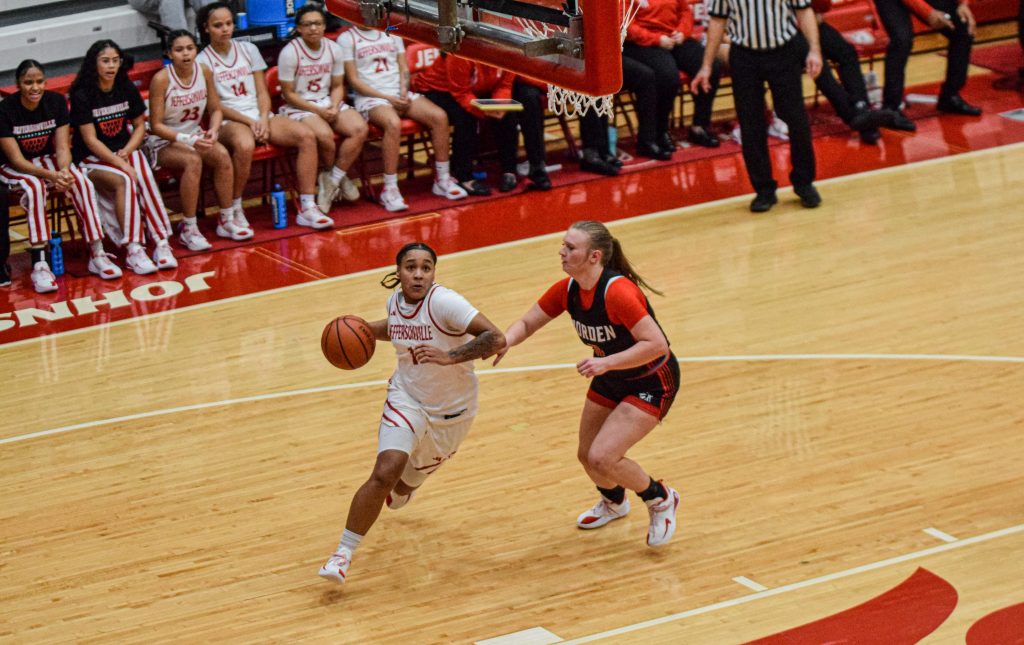 Senior Kelis Dansby blows past her Borden defender to get a layup. Photo by Malachi Conrad.