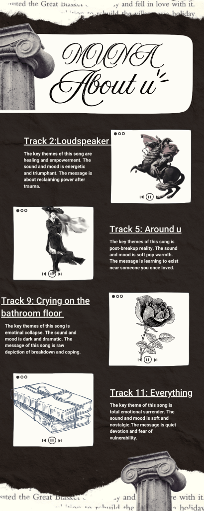 MUNA’s debut album About U, released in 2017, is a neon-lit diary of heartbreak, self-discovery, and resilience. It doesn’t feel like just discovering an album; it feels like a moment in time, like standing on a city rooftop at midnight, overwhelmed by possibilities.