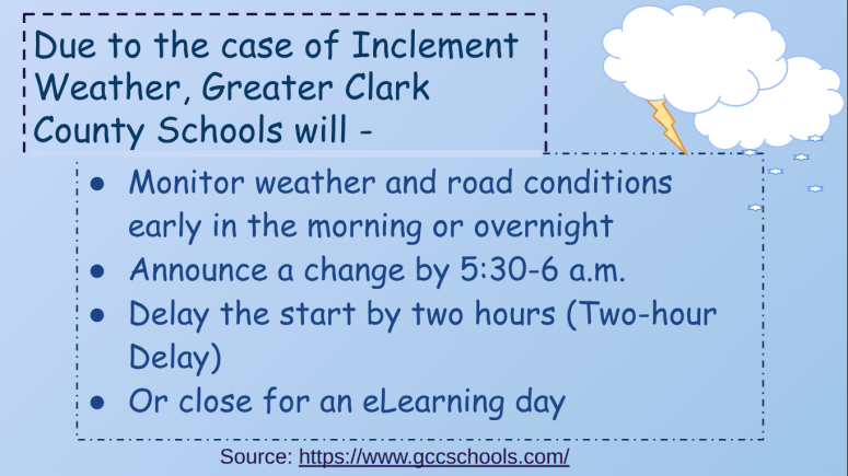 We’ve had snow days with asynchronous learning this school year. This is because the night before, there was snow. It was under 32 degrees, and that caused the snow to freeze and the roads to be icy. But Greater Clark County Schools didn’t call off school until the next morning.