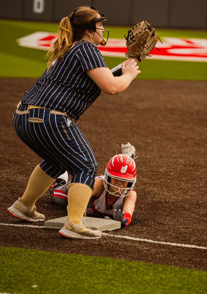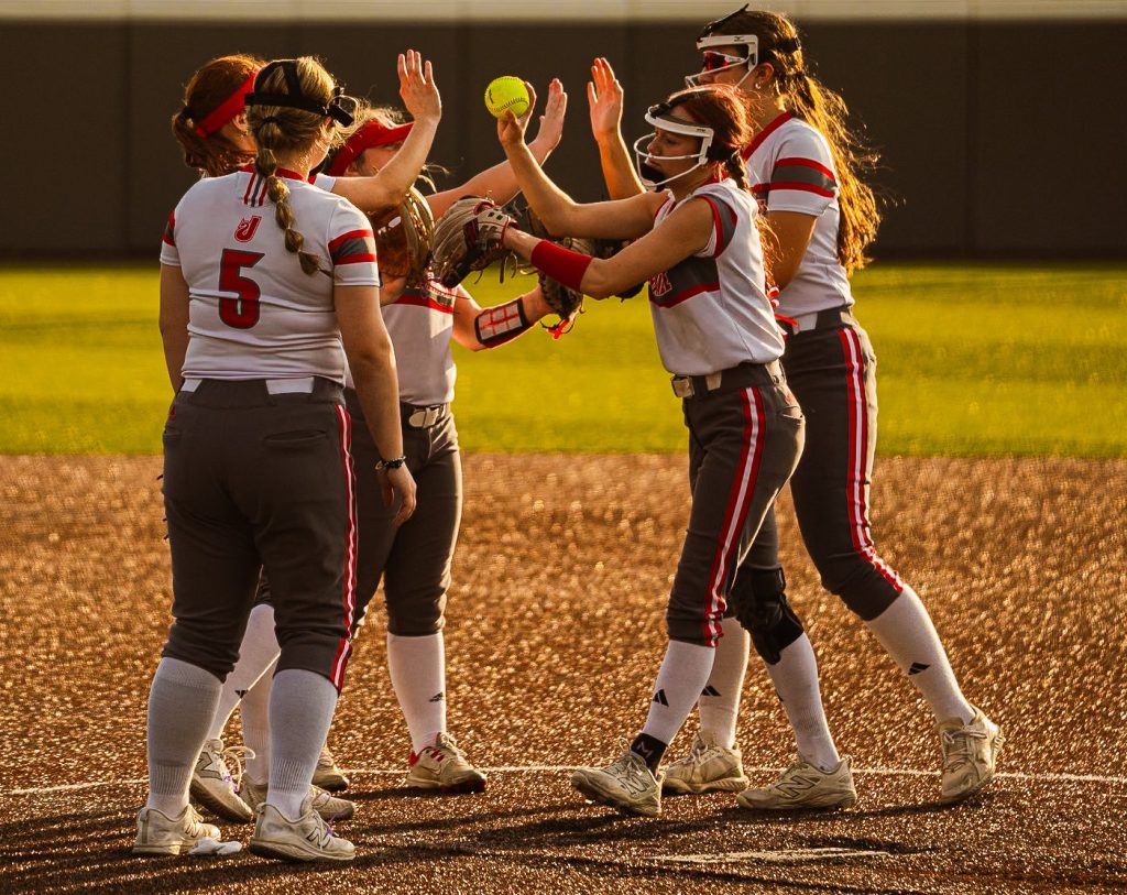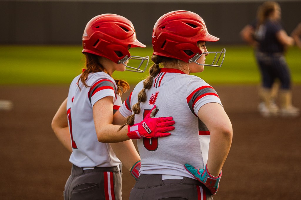 The Red Devils group together after getting a Providence player out. Providence won against Jeffersonville 6-4 on Monday. JHS plays Henryville tonight and Seymour Friday. Photo by Malachi Conrad.Senior Aubrey Cannon bats, getting to first base after a successful hit against Providence. Photo by Malachi Conrad.Sophomore Loralei Mashburn pitches for the Red Devils as they face local rival Providence. Mashburn pitched seven innings for JHS, allowing three earned runs. Providence defeated JHS 6-4 on Monday night. Photo by Malachi Conrad.Sophomore Loralei Mashburn dives into third base to eventually earn a run for the Red Devils. Mashburn also pitched for seven innings of Monday’s game against Providence. Photo by Malachi Conrad.Senior Aubrey Cannon and sophomore Kenzie Myers look onto the field during a break in the game against Providence on Monday. Photo by Malachi Conrad.Senior Aveya Franklin makes a catch in the right field during Monday’s game against Providence. Photo by Magdalene Conrad.Sophomore Kenzie Myers makes a throw from third base during the JHS match-up against Providence Monday night. Providence won 6-4. Photo by Magdalene Conrad.Sophomore Joslin Wilson is welcomed at home plate after a run by sophomore Kenzie Myers during the JHS home game against Providence Monday night. JHS faces Henryville tonight and Seymour this Friday. Photo by Magdalene Conrad.