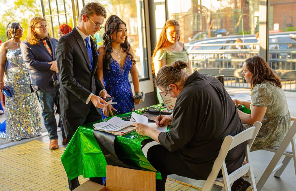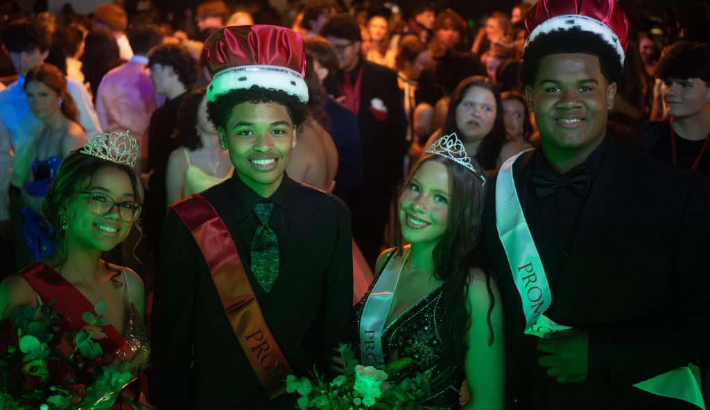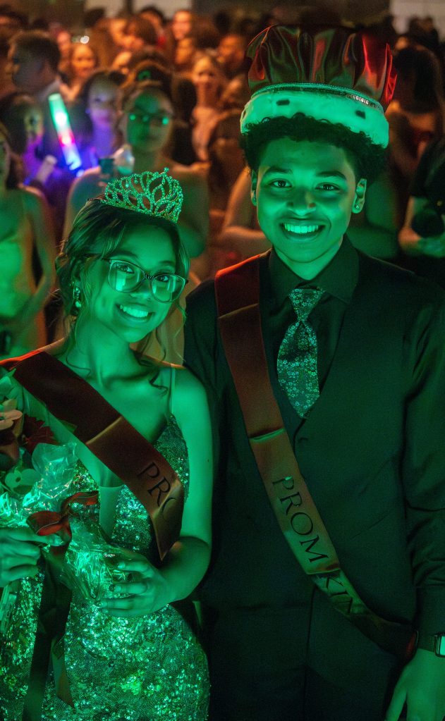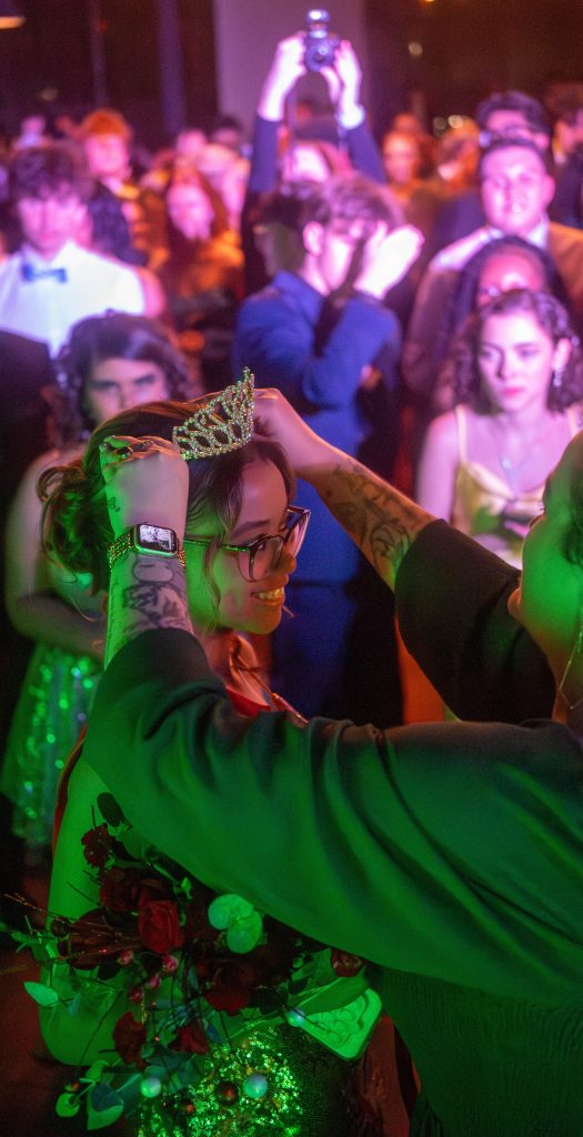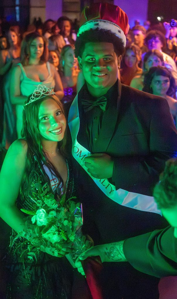 Prom attendees grab from the selection of food set up by the workers hosting the event. Photos by Malachi Conrad.Seniors Blake Russell and Abril Sandoval verify their ticket purchase toward the start of the event at Saturday’s prom at the Mellwood Art Center. Photo by Malachi Conrad.Prom attendees settle into tables as the event begins to fill at the Mellwood Art Center. Photo by Malachi Conrad.Senior Magdalene Conrad and and guest Ryan Shortt share a moment at prom as the venue begins to fill. Photo by Malachi Conrad.JHS students dance at prom on April 11 at the Mellwood Art Center in Louisville. Photo by Malachi Conrad.Prom attendees dance the night away in a blend of light and shadow. Photo by Malachi Conrad.Prom attendees use an I-pad to record themselves on the dance floor at Saturday’s prom. Photo by Malachi Conrad Junior Jomall Owens gets crowned prom prince at Saturday’s prom. Photo by Magdalene Conrad.Junior Harper Hylton gets crowned prom princess. Photo by Magdalene Conrad.Juniors Jomall Owens and Harper Hylton pose for a picture after being crowned prom prince and princess. This was the first year juniors were eligible to be voted prom prince and princess. Photo by Magdalene Conrad.Senior Ralph Brooks smiles after being crowned prom king. Photo by Magdalene Conrad. Senior Kendall Curry gets crowned prom queen on April 11 at the Mellwood Arts Center. Photo by Magdalene Conrad.Seniors Ralph Brooks and Kendall Curry pose for a photo after being crowned prom king and queen. Photo by Magdalene Conrad.Senior Kendall Curry, senior Ralph Brooks, junior Harper Hylton and junior Jomall Owens pose for a photo after being crowned prom royalty on Saturday, April 11. Photo by Magdalene Conrad. Senior Kelis Dansby dances on stage late into the event at Saturday’s prom. Photo by Malachi Conrad.The majority of the JHS boys’ volleyball team poses for a photo at the DIY photo booth during prom on Saturday. Photo by Malachi Conrad.