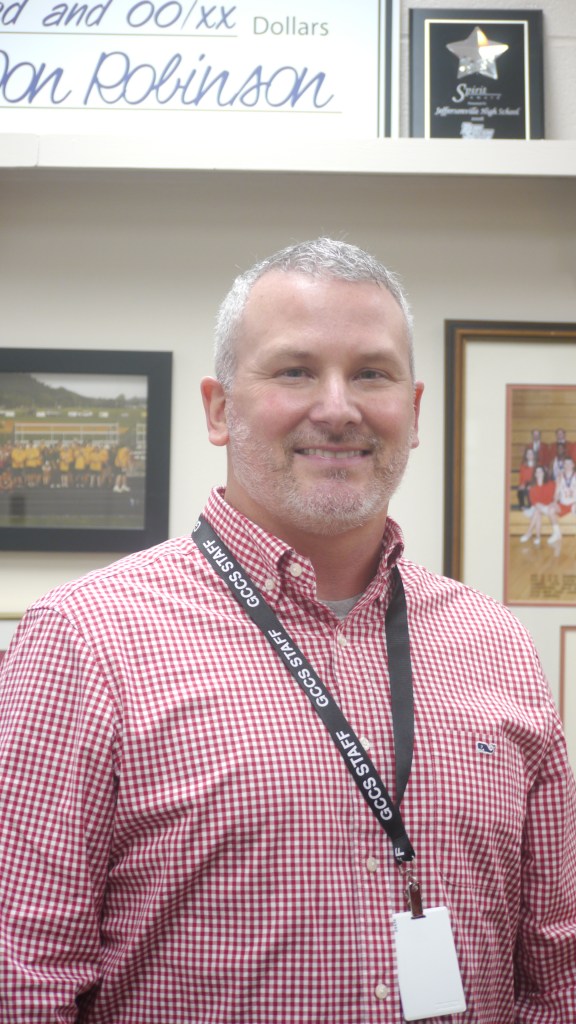 Coach Andrew Grantz says he took the boys basketball job at Jeff High for many reasons, including “the history, the tradition, and the fan support here at Jeff.” Grantz also wanted to return to coaching in Indiana, and with the talent at Jeff High, he was excited at the opportunity to build the program.