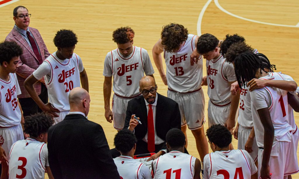 Coach Andrew Grantz says he took the boys basketball job at Jeff High for many reasons, including “the history, the tradition, and the fan support here at Jeff.” Grantz also wanted to return to coaching in Indiana, and with the talent at Jeff High, he was excited at the opportunity to build the program.