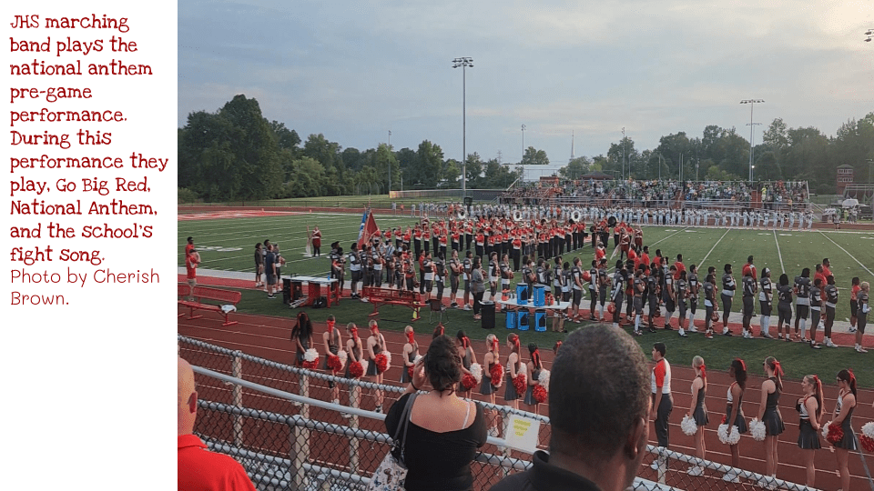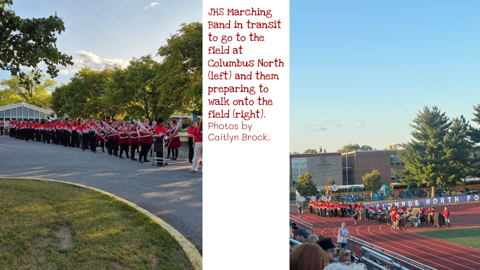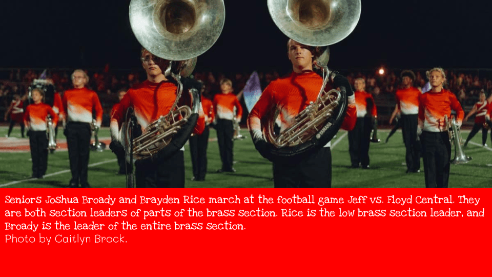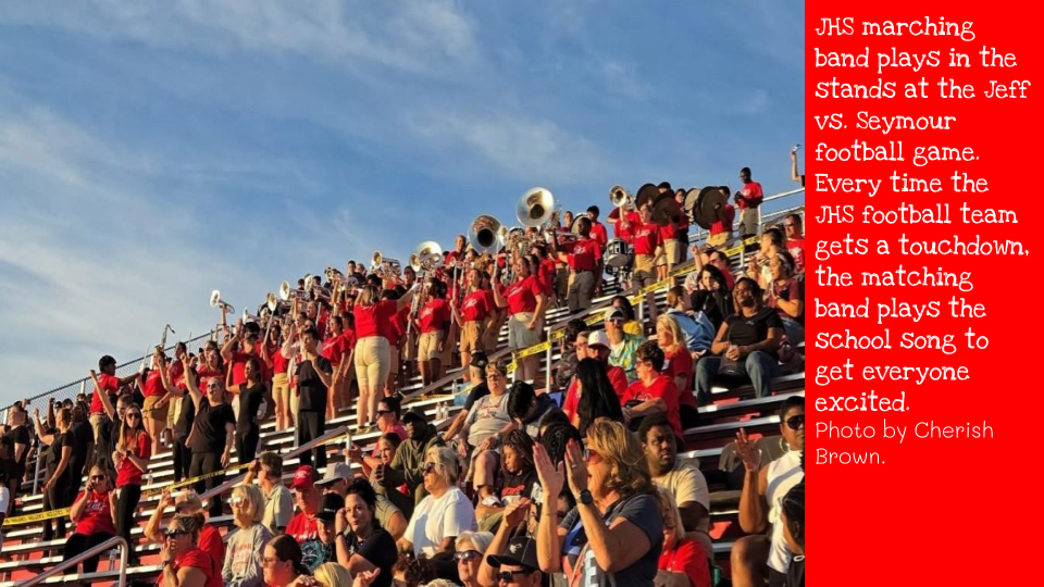 We perform and represent the Jeffersonville Red Devils at our own competitions. We competitively perform in front of judges, against many bands in our district. This season our hard work led to an appearance at the state finals, where we placed 15th.