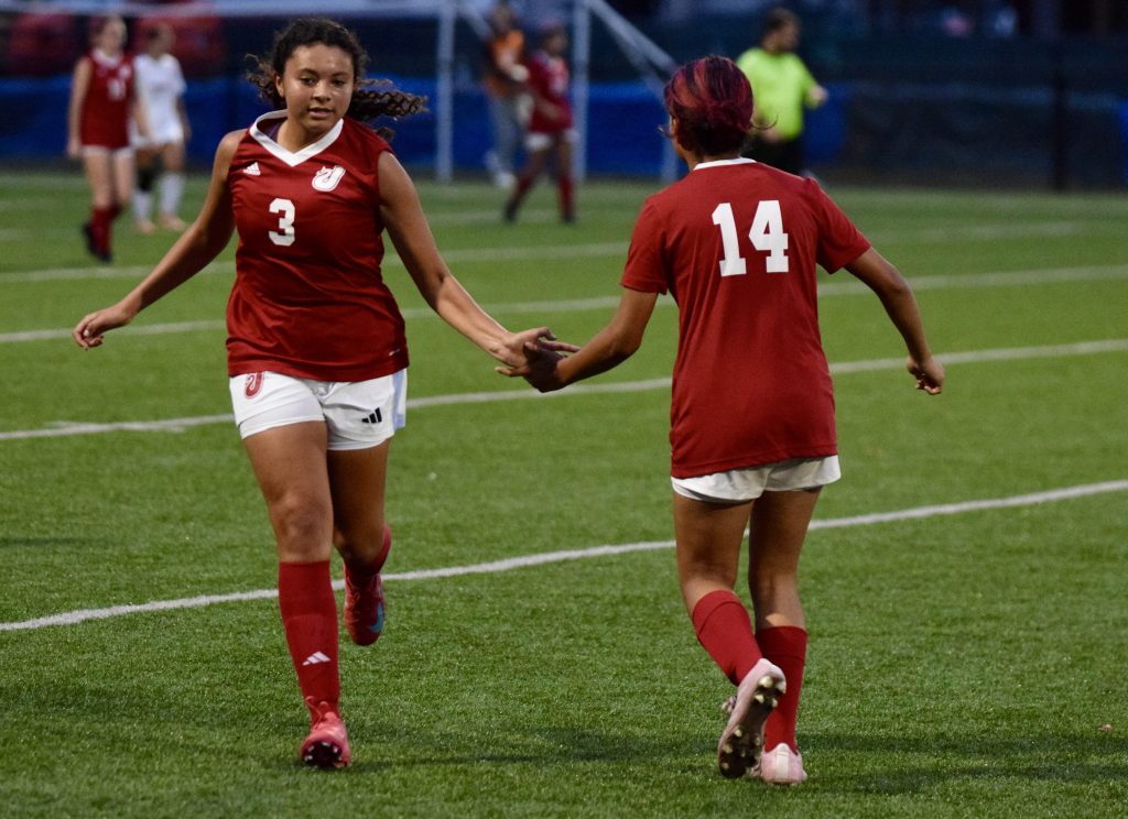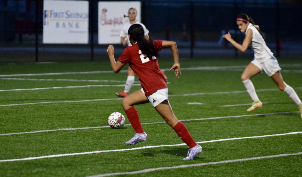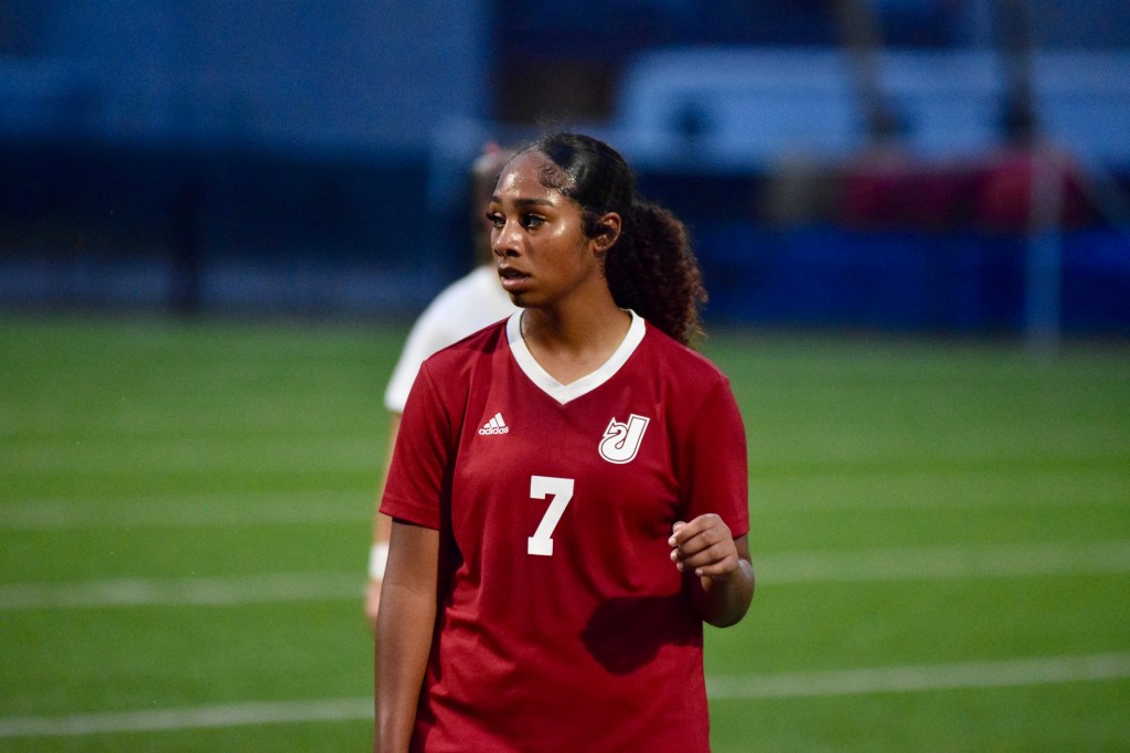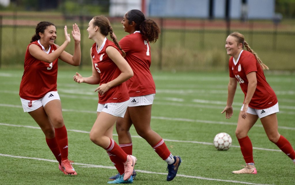 The Red Devils celebrate after scoring a goal to tie the game against Columbus East. Photo by Malachi Conrad.Senior Aubrey Cummings strikes the ball at the half-field for her teammates to receive. Photo by Malachi Conrad.Junior Abi Lemon kicks the ball and passes to her open teammate. Photo by Malachi Conrad.Freshman Haylee Alvaregna strikes the ball down the field. JHS went on to beat Columbus East 4-1 Tuesday night, Sept. 23. Photo by Malachi Conrad.Junior Laela Rudicel and junior Abi Lemon jump into each other to celebrate going up 2-1 against Columbus East Tuesday night. Photo by Malachi Conrad.Junior Abi Lemon cuts off an Columbus East player and attempts to steal the ball. Photo by Malachi Conrad.Junior Arianna Adams throws the ball infield to her teammate. Photo by Malachi Conrad.Sophomore Samy Carrillo subs in for junior Abi Lemon, and they show each other support. Photo by Malachi Conrad.Junior Layana Cosby watches the ongoing actions and prepares her next move. Photo by Malachi Conrad.Sophomore Hailey Franco Hernandez chases the ball along with a Columbus East defender to attempt a shot on the goal. The Red Devils won 4-1 to improve to 6-1-1 on the season. Photo by Malachi Conrad.