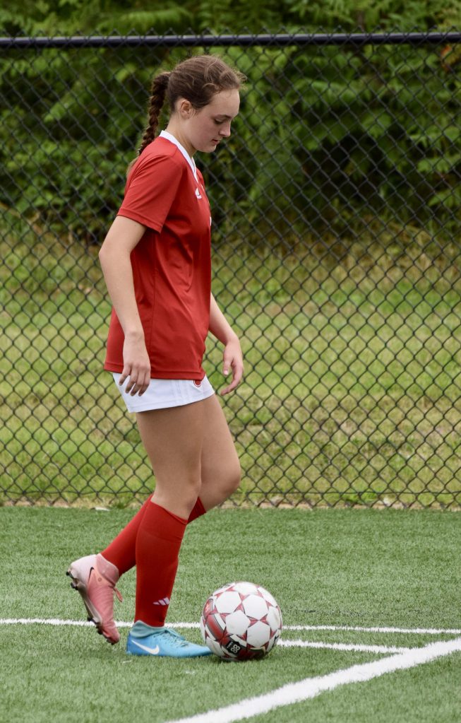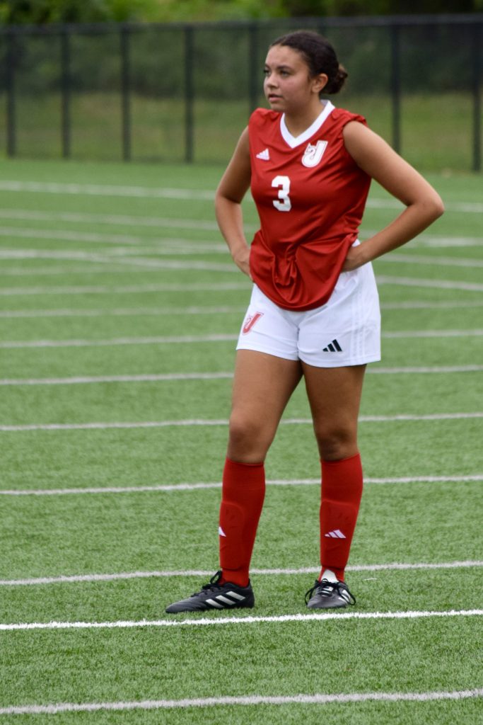 Junior Scarlet McCray strikes the ball to attempt a goal. The Red Devils defeated North Harrison 5-0. Photo by Malachi Conrad.The Red Devil bench cheers on the team. JHS soccer went on to win over North Harrison 5-0. Photo By Malachi Conrad.Junior Laela Rudicel prepares to kick the ball in fo the team. This was the sixth win in a row for JHS over North Harrison. Photo By Malachi Conrad.Junior Scarlet McCray takes a breather in between possessions. Photo by Malachi Conrad.Junior Arianna Adam is observing the field, preparing her next move. The Red Devils play Seymour on Tuesday, Sept. 2. Photo by Malachi Conrad.