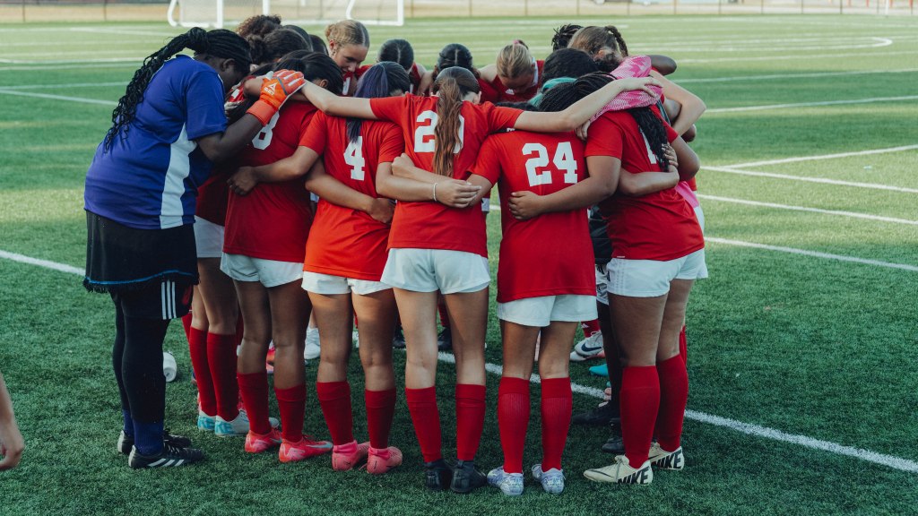 Pushing themselves as hard as they can for the 80 minutes that the match lasts. Heads up and hearts pounding every touch of the ball sends it moving across the field. With a shared goal, getting the ball into the net, the team moves as a unit across the field.